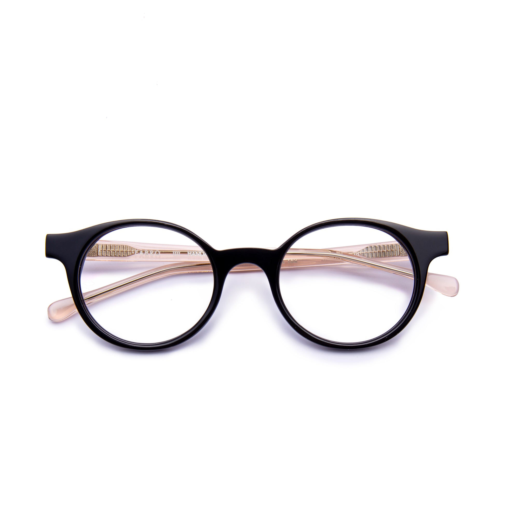 Óculos Barletta // Cor 162 // Preto // hastes em Rosa Champagne Transparente // Acabamento Fosco