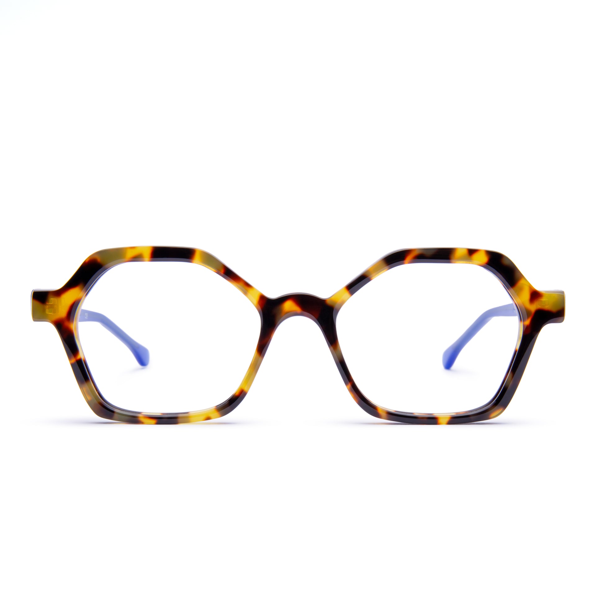 Óculos Atami // Cor 149 // Havana Clássico // hastes em Azul Royal Milk